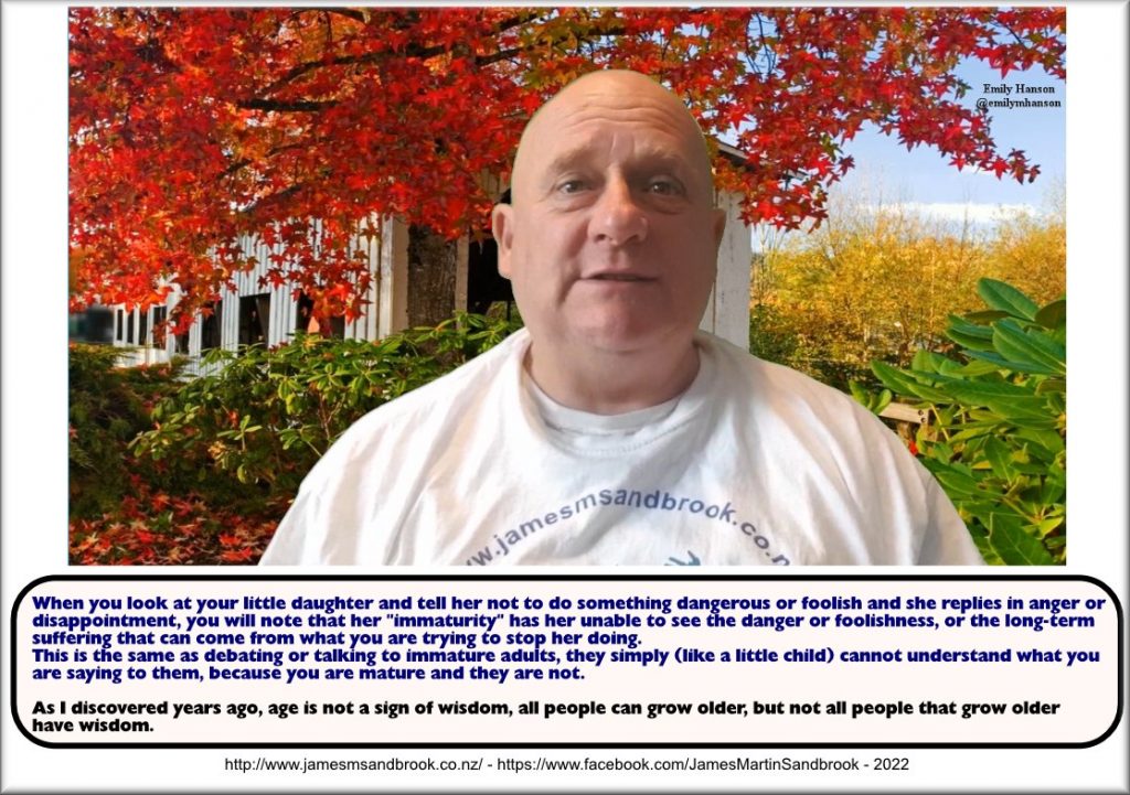 When you look at your little daughter and tell her not to do something dangerous or foolish and she replies in anger or disappointment, you will note that her “immaturity” has her unable to see the danger or foolishness, or the long-term suffering that can come from what you are trying to stop her doing.