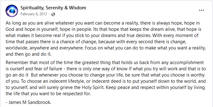 Remember that most of the time the greatest thing that holds us back from any accomplishment is ourself and fear of failure – there is only one way of know if what you try will work and that is to go an do it But whenever you choose to change your life, be sure that what you choose is worthy of you. To choose an indecent lifestyle, or indecent deed is to put yourself down to the world, and to yourself, and will surely grieve the Holy Spirit. Keep peace and respect within yourself by living the life that you want to be respected for.