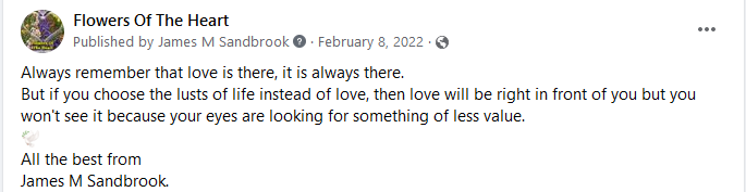 But if you choose the lusts of life instead of love, then love will be right in front of you but you won’t see it because your eyes are looking for something of less value.