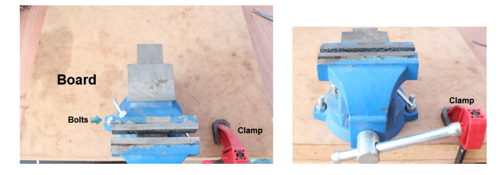 Images 6 & Image 7 show the vice I have that is bolted to a board and then a clamp is used to hold the board that the vice is on to a table.
