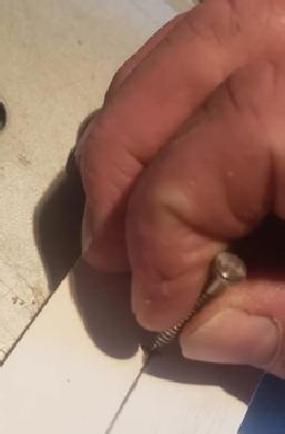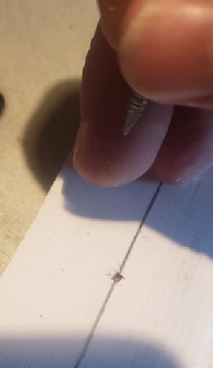 Father then went on to say, “These hooks can be a bit of a trial to get into the wood, so we tend to start them off with a hole. Not a Pilot Hole, more of just an entry into the wood to get the screw part of the hook biting into the wood. A Pilot Hole can be used but I think it is wise to have as much strength in a hook due to the workload it will have when something is hanging off it, Pilot holes make the hole for the hook too big for my liking. ” He continued, “we can use a few items to start the hole off with, like a punch.”