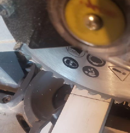 With that all in mind Father then placed the wood in the Drop Saw for cutting. (See Image 3)