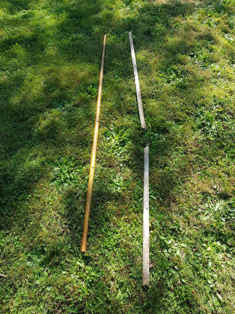 The image above shows us a Pine Wood Staff and a Oak Staff (Red Oak). Both had been left outside from time to time and suffered int he weather but the pine snapped easily as the softwood jsut could not handle the power and strain put upon it in general staff training.