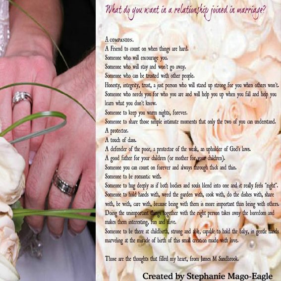 What do you want in a relationship joined in marriage?