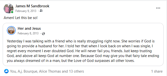 Yesterday I was talking with a friend who is really struggling right now. She worries if God is going to provide a husband for her. I told her that when I look back on when I was single, I regret every moment I ever doubted God. He will never fail you, friends. Just keep trusting God, and above all keep God at number one. Because God may give you that fairy tale ending you always dreamed of in a man, but the Love of God surpasses all other loves.